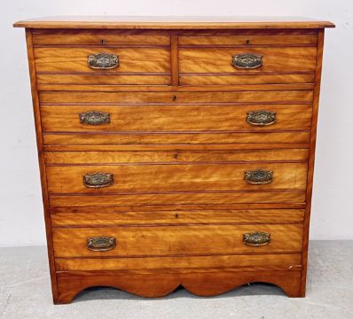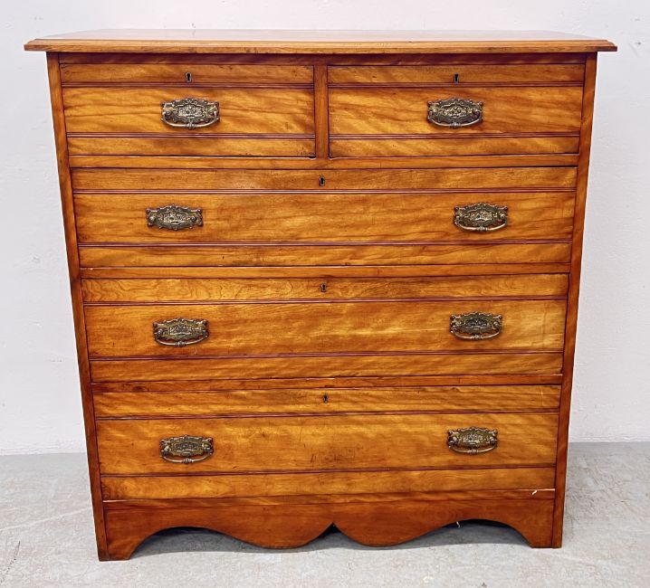 A SATIN BIRCH FIVE DRAWER CHEST.