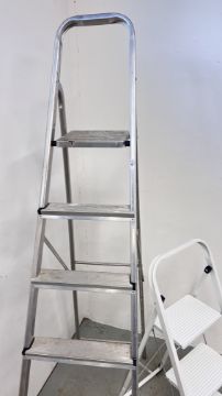 ALUMINIUM 7 TREAD STEP LADDER AND 3 STEP STEP LADDER.