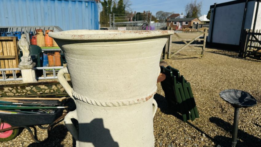 AN OVERSIZE TERRACOTTA GRECIAN STYLE GARDEN POT, HEIGHT 150CM.