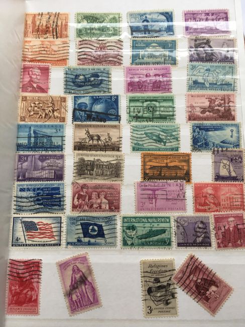 STAMPS: COLLECTION IN THREE VOLUMES AND FOUR FOLDERS USA, THEMATICS ETC.