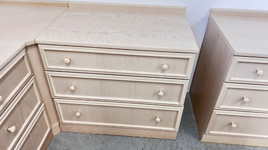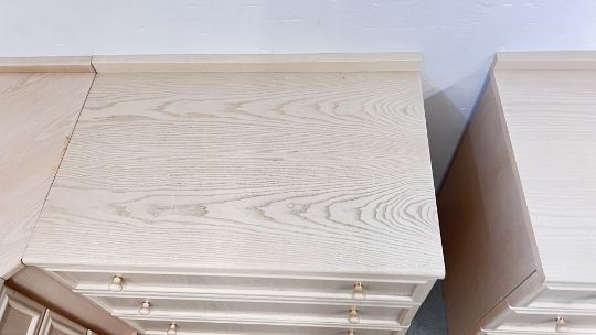 5 PIECE BEDROOM SUITE INCLUDING LIMED FINISH COMPRISING OF 6 DRAWER CHEST, W 140CM, 3 DRAWER CHEST, W 70CM, 3 DRAWER BEDSIDE CHEST, W 50CM, SINGLE DRAWER BEDSIDE CUPBOARD, W 50CM AND CORNER LAUNDRY BIN.