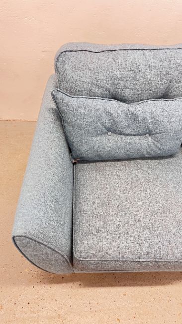 FRENCH CONNECTION HOME TWO SEAT BLUE UPHOLSTERED SOFA WITH BUTTON BACK DETAIL, W 160CM.