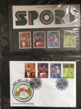 STAMPS: BOX WITH OLD TIME EUROPE ON A GOOD QUANTITY OF ALBUM LEAVES, ALSO CYPRUS 1976 AND 1981 PACKS, ISRAEL, GB 1980 TEST MATCH CENTENARY SOUVENIR COLLECTION COVERS ETC.
