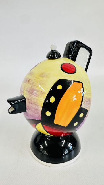 A LORNA BAILEY "MANHATTAN" TEAPOT BEARING SIGNATURE.