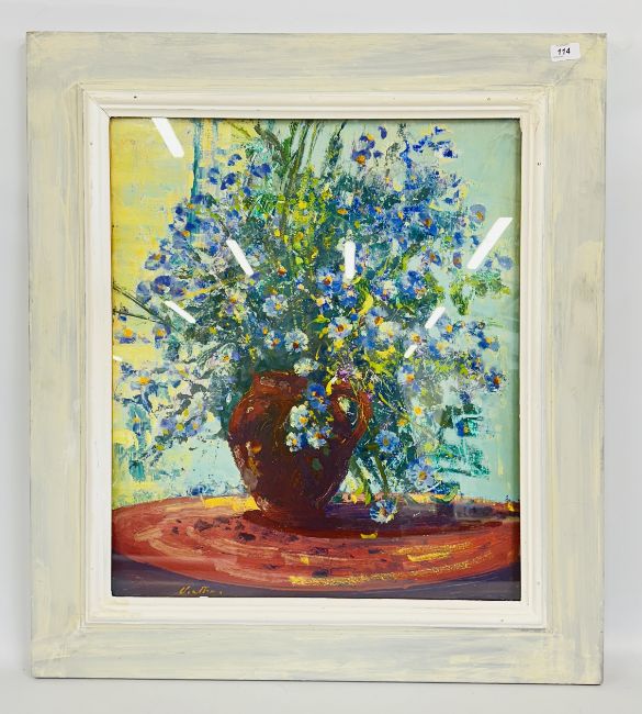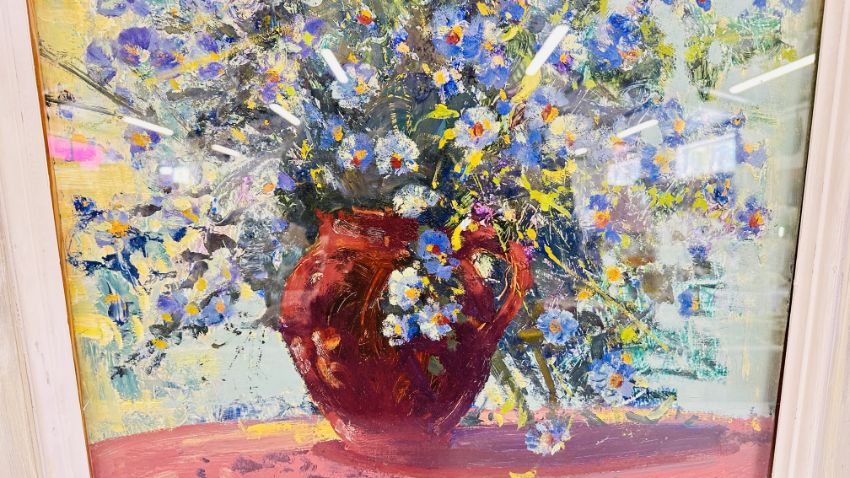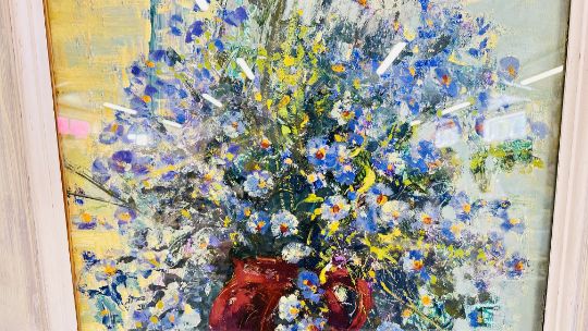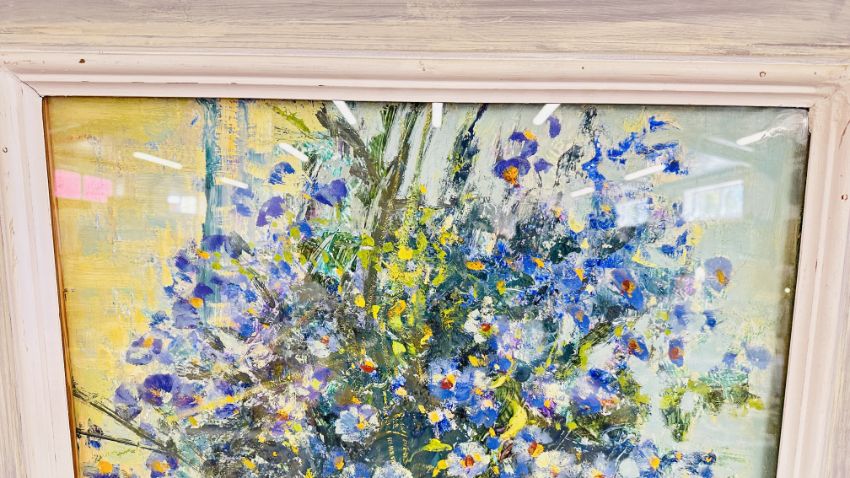 GEOFFREY CHATTEN OIL ON BOARD "MICHAELMAS DAISY'S", BEARING SIGNATURE CHATTEN (H 86.5CM X W 76.5CM INCLUDING FRAME).