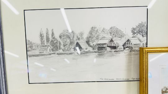 A GROUP OF 13 ORIGINAL ART WORKS BEARING SIGNATURE JAMES M. DUNHAM DEPICTING VARIOUS SUBJECTS TO INCLUDE LOCAL INTEREST AND SAILING.