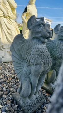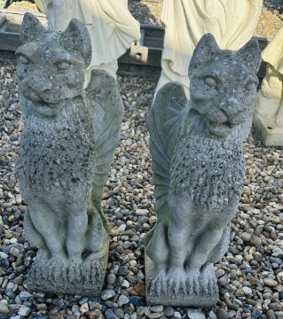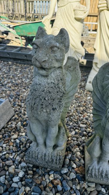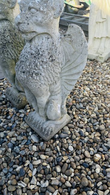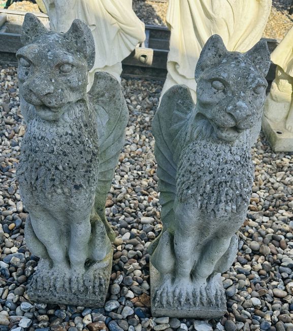PAIR OF GRIFFIN STONEWORK GARDEN FEATURES, HEIGHT 60CM.