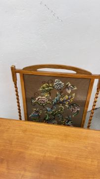 A GROUP OF OCCASIONAL FURNITURE TO INCLUDE OAK FRAMED FIRE SCREEN, LINEN BIN, RECTANGULAR COFFEE TABLE, NEST OF THREE TABLES, DROP SIDE TABLE, CANTERBURY.