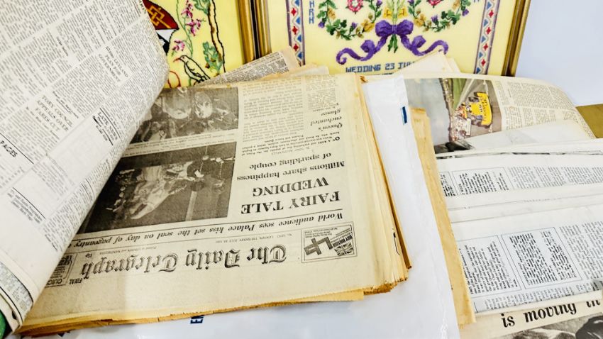 A QUANTITY OF MAINLY VINTAGE ROYALTY RELATED EPHEMERA + TWO FRAMED NEEDLEWORK PICTURES.