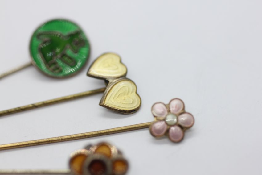 FIVE SILVER ENAMELLED SCANDINAVIAN STICK PINS TO INCLUDE DAVID ANDERSON.