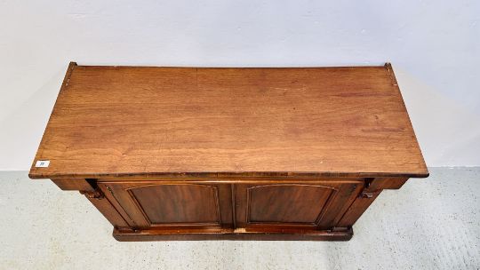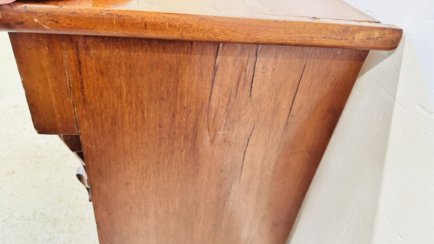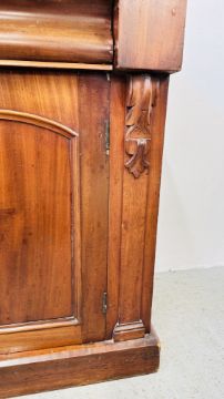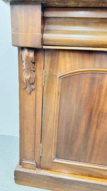 A VICTORIAN MAHOGANY CHIFFONIER WITH FRIEZE DRAWER (MISSING BACK UPSTAND), WIDTH 119CM.
