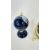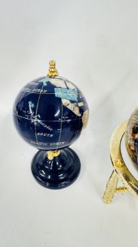 TWO SMALL GEM STONE DESK GLOBES, TALLEST 18CM.