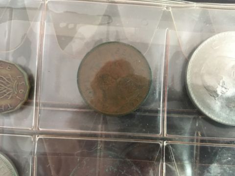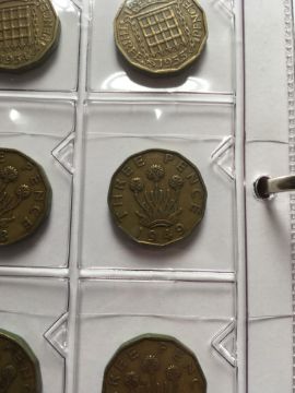 COINS: A COLLECTION IN TWO ALBUMS, MAINLY UK WITH BRASS THREEPENCE 1946 (2), 1949, PENNY 1953 ETC.