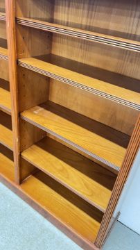 YEW WOOD FINISH 8 TIER BOOKSHELF, W 152CM X D 35CM X H 152CM.