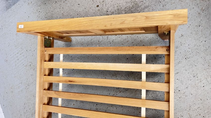 A GOOD QUALITY MODERN SOLID OAK SINGLE BED FRAME.