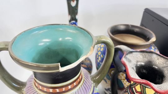 A LARGE GROUP OF GOUDA VARIOUS DESIGNS (SOME A/F) + A BOX SPEAKERS INC. AIWA, WHARFEDALE RADION - SOLD AS SEEN.