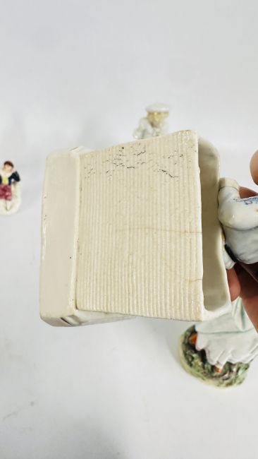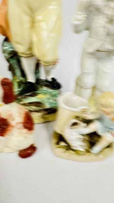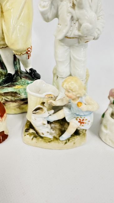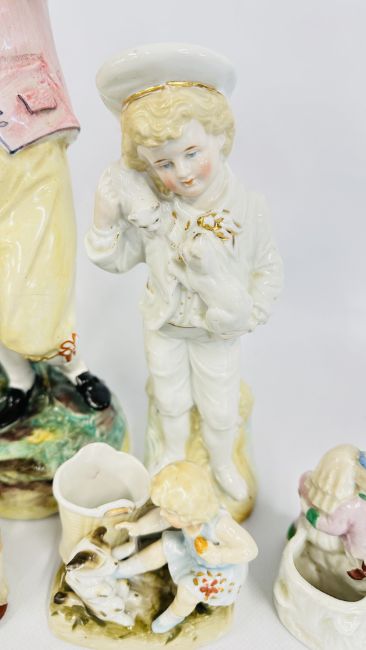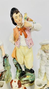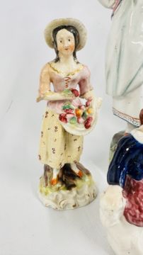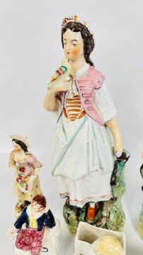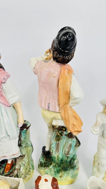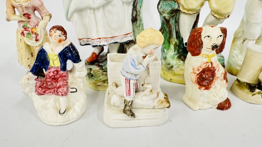 A GROUP OF STAFFORDSHIRE FIGURES AND MATCH STRIKERS, THE TALLEST 33CM (9 PIECES).
