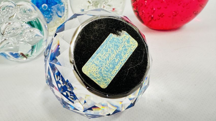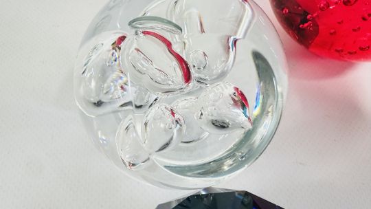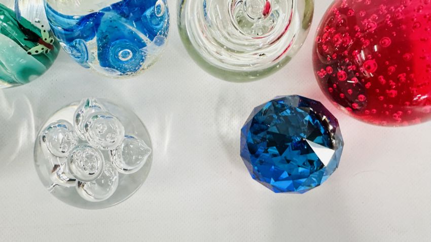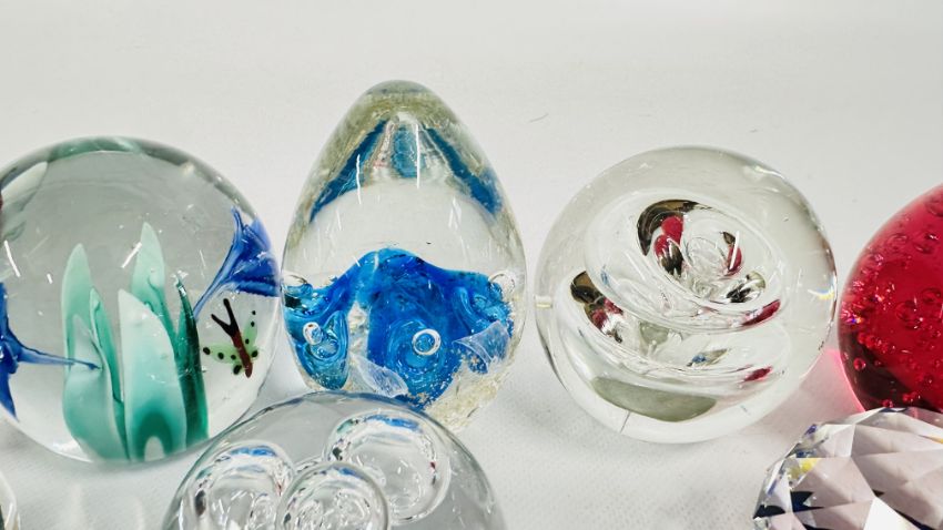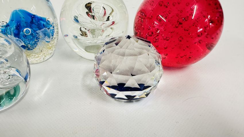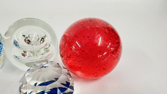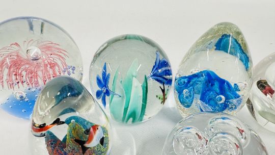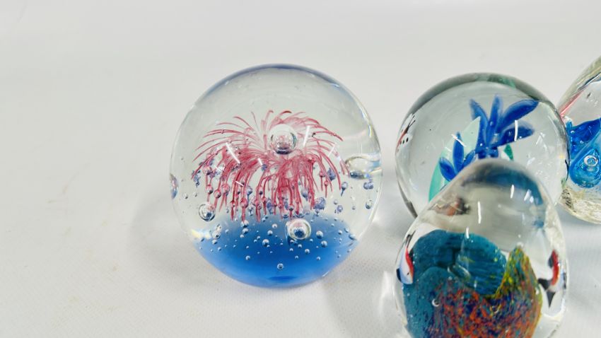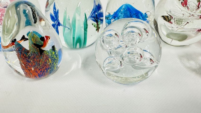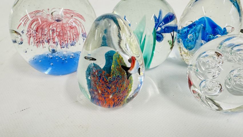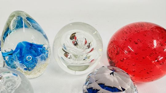 8 X ART GLASS PAPERWEIGHTS, VARIOUS SIZES.