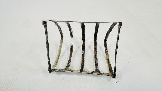AN ANTIQUE SILVER TOAST RACK, BIRMINGHAM 1923, MAKER ELKINGTON & Co, L 7.5CM X H 10CM.