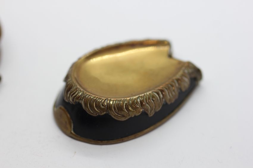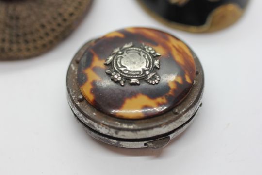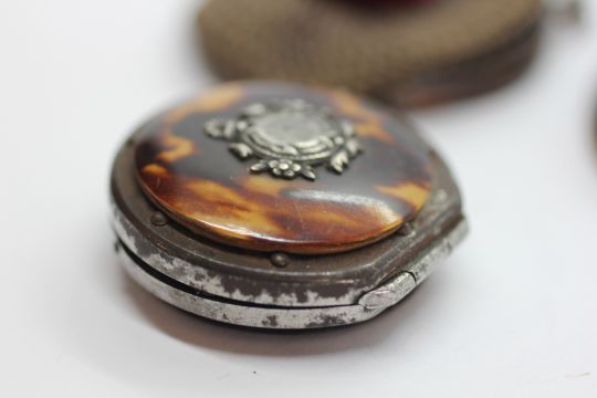A VICTORIAN "HORSE SHOE" DESIGN VESTA ALONG WITH A MINIATURE C19TH TORTOISE SHELL PURSE AND MINIATURE CROCHET "BERET" DESIGN PURSE.