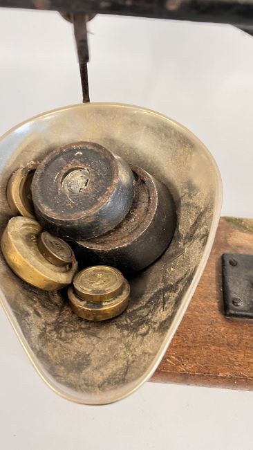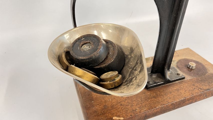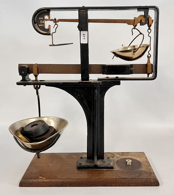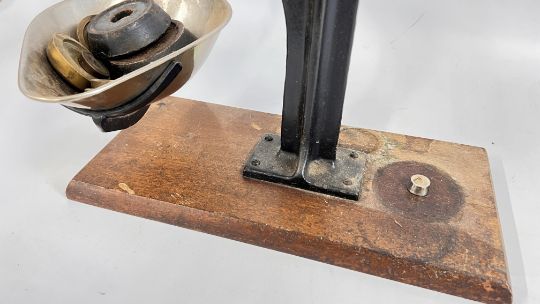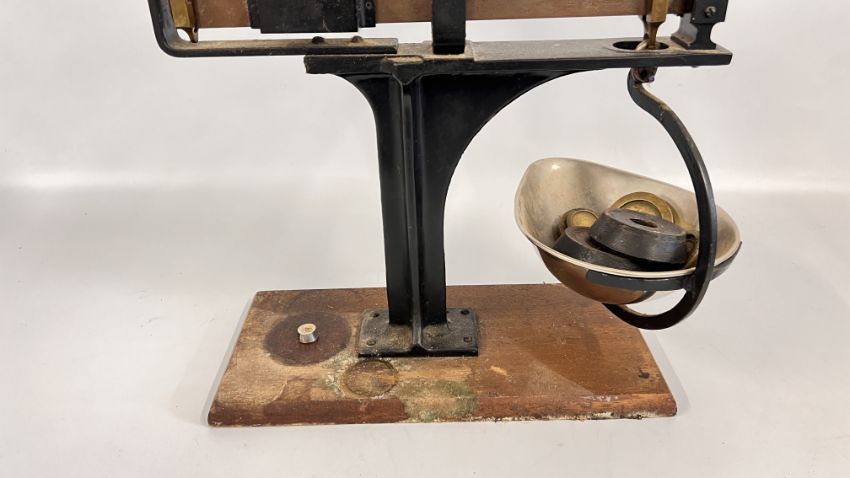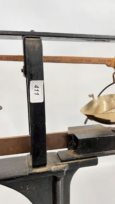 A SET OF VINTAGE W & T AVERY LTD BEAM SCALES.