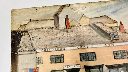 NAIVE PAINTING "THE CHANNINGS CROWN INN" MONOGRAMMED CJ.