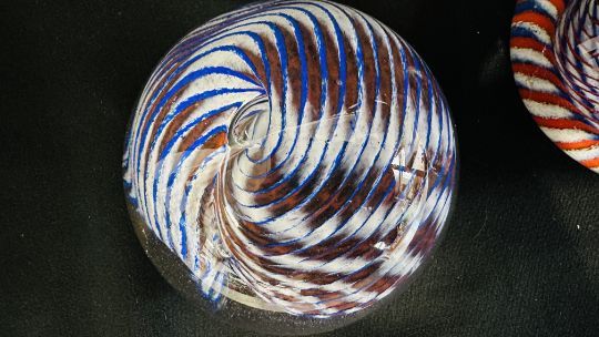 A MATCHED PAIR OF "SHAKSPEARE" ART GLASS PAPERWEIGHTS.
