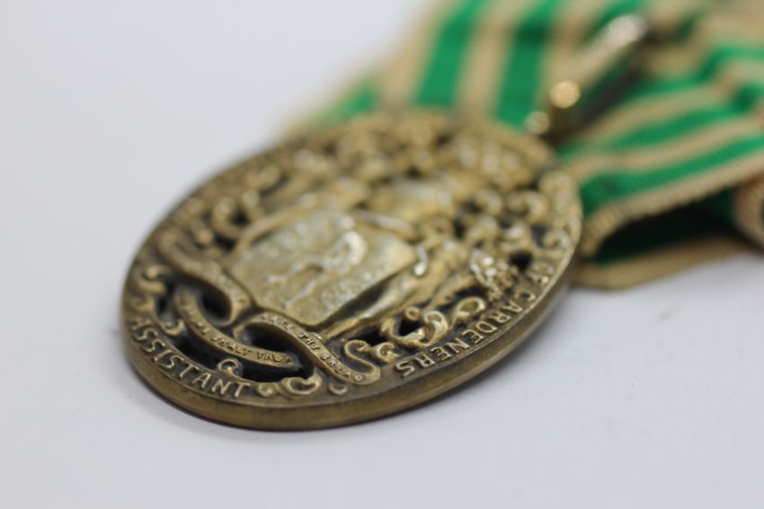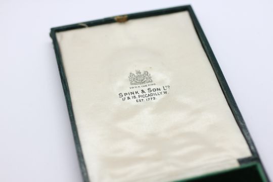 A VINTAGE SILVER GILT MEDAL & RELATED RIBBON TITLED "WORSHIPFUL COMPANY OF GARDENERS" IN A FITTED PRESENTATION BOX MARKED SPINK & SON LTD PICCADILLY.