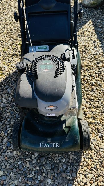 HAYLER HARRIER 41 PETROL DRIVEN SELF PROPELLED ROTARY LAWN MOWER COMPLETE WITH GRASS COLLECTOR.