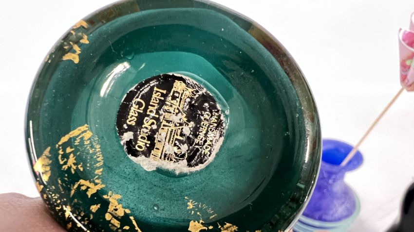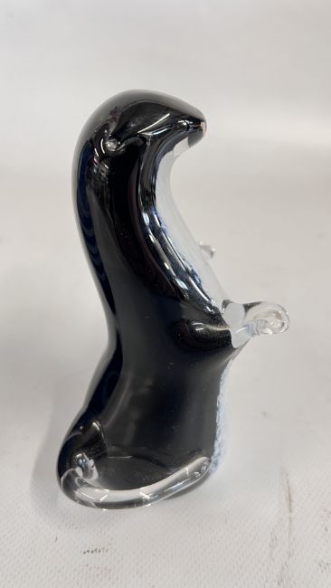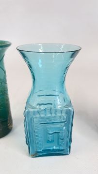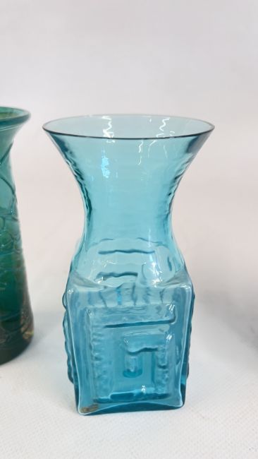 A WEDGWOOD ART GLASS PAPERWEIGHT + 3 VASES TO INCLUDE DARTINGTON AND ISLAND STUDIO EXAMPLES.