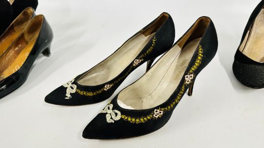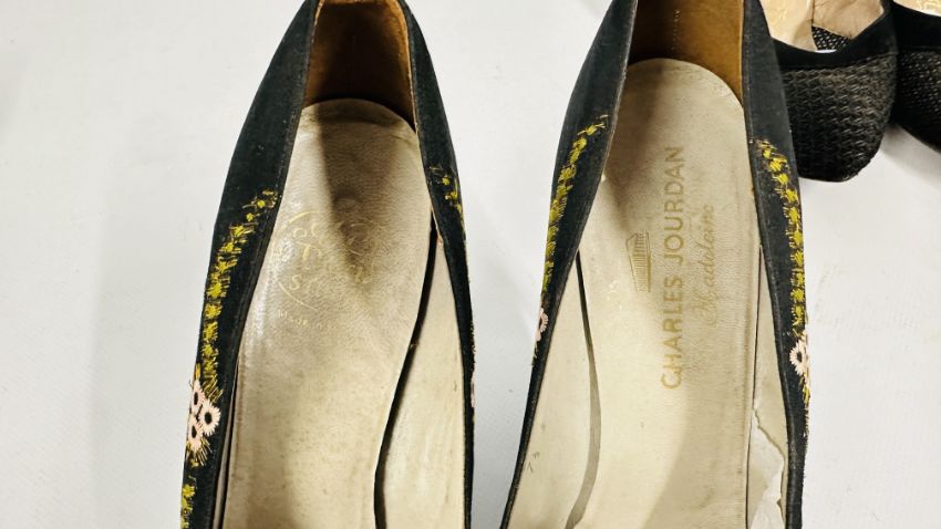 SIX PAIRS OF VINTAGE LADIES COURT SHOES TO INCLUDE SALVATORE FERRAGAMO & CHARLES JOURDAN.