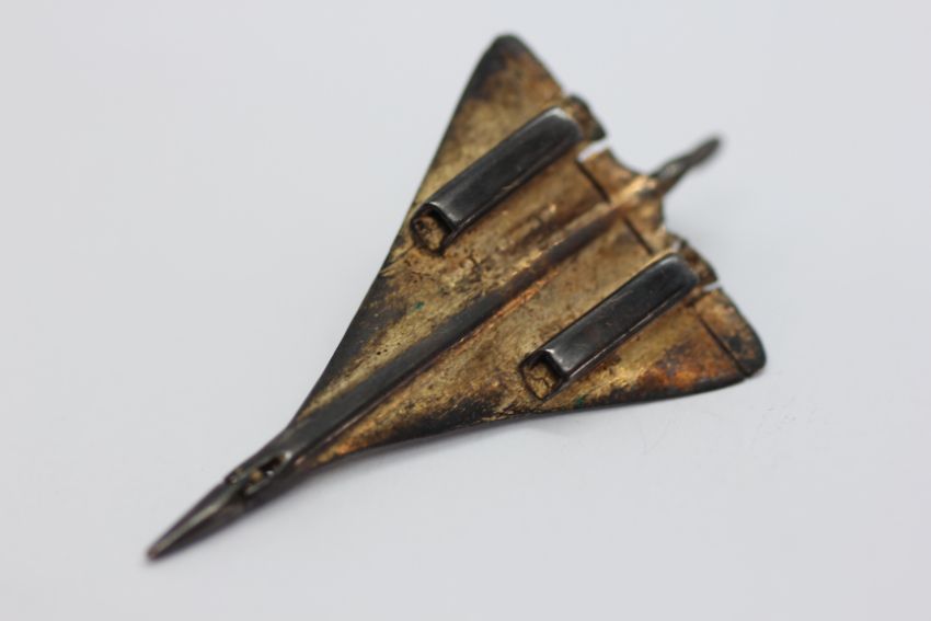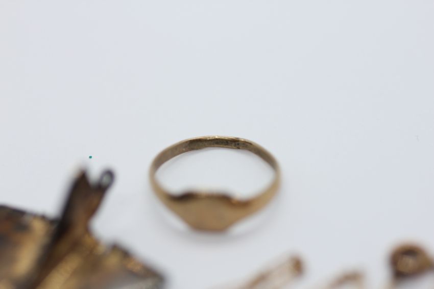 A 9CT GOLD CHILD'S RING + A FINE 9CT GOLD CHAIN A/F AND A 9CT GOLD CONCORDE PENDANT.