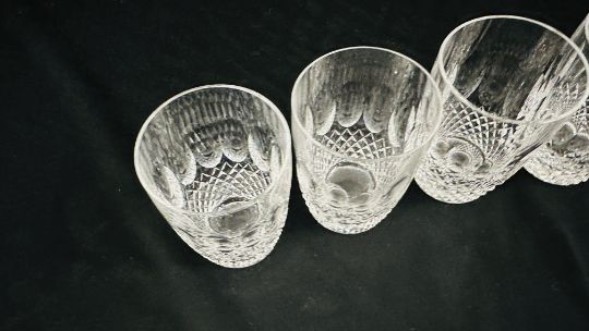 A SET OF 6 WATERFORD CRYSTAL COLLEEN PATTERN TUMBLERS, H 11CM.