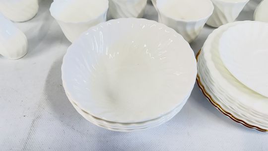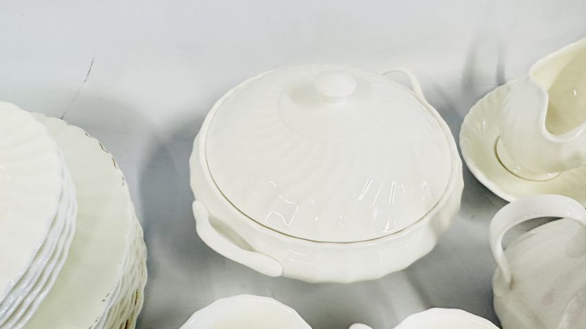 A QUANTITY OF WEDGWOOD BONE CHINA TEA AND DINNER WARE TO INCLUDE GOLD CHELSEA EXAMPLES.