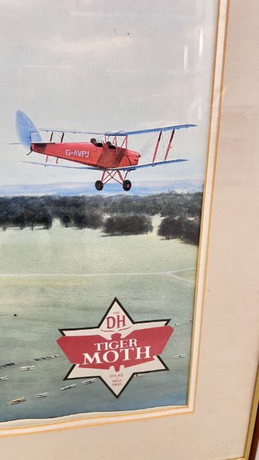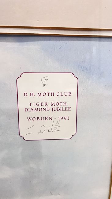 A FRAMED LIMITED EDITION PRINT 172/300 TITLED D.H. MOTH CLUB TIGER MOTH DIAMOND JUBILEE WOBURN 1991 (W 57 X H 71.5CM INCLUDING FRAME) + A FURTHER RAF LANCASTER B.1 PRINT.