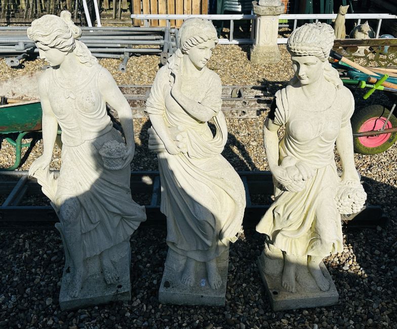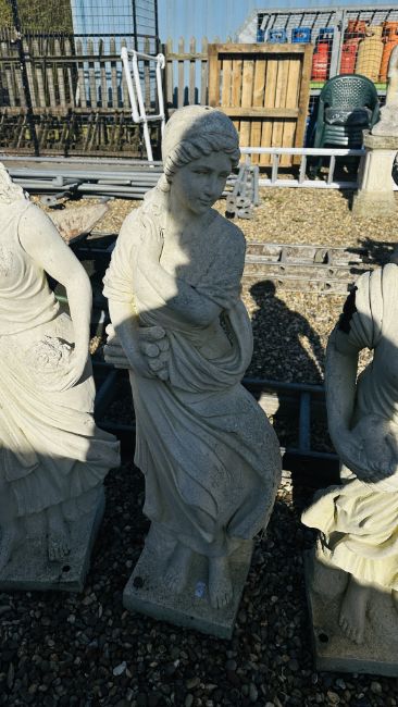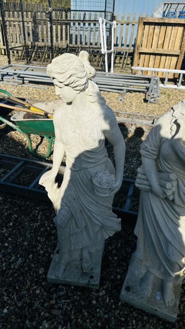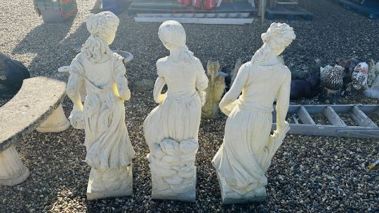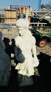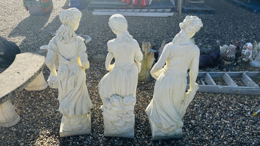 3 X STONE EFFECT PLASTIC GARDEN FIGURES A/F CONDITION, HEIGHT 115CM.