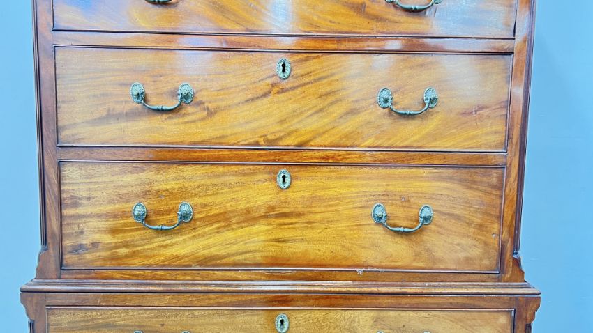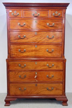 ANTIQUE C18TH GEORGE III MAHOGANY CHEST ON CHEST OF DRAWERS, W 112CM X D 56CM X H 188CM. (KEYS WITH AUCTIONEER).