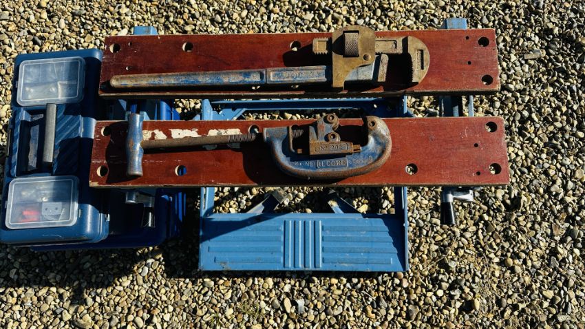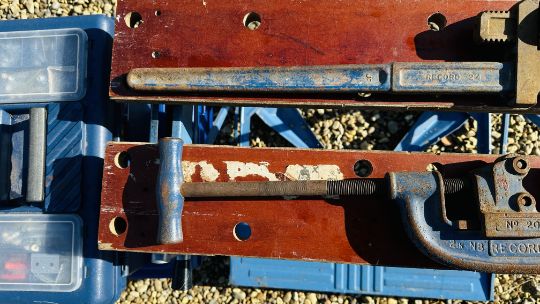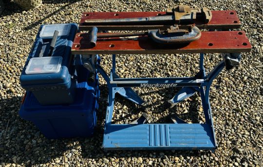 BLACK & DECKER WORK MATE, 2 X TOOL BOXES, RECORD No. 202 HEAVY DUTY PIPE CUTTERS AND RECORD No. 24 HEAVY DUTY STILSONS.
