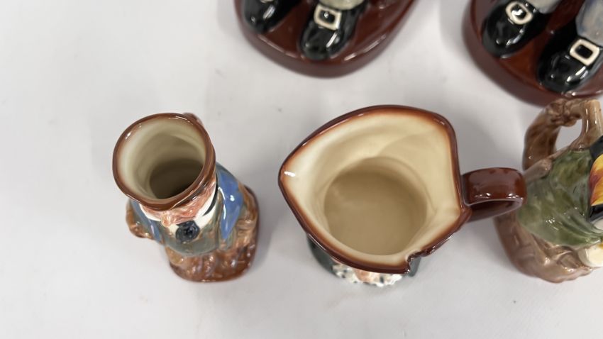 A GROUP OF 6 ROYAL DOULTON CHARACTER / TOBY JUGS TO INCLUDE OLD CHARLIE, HAPPY JOHN AND SAIREY GAMP EXAMPLES.