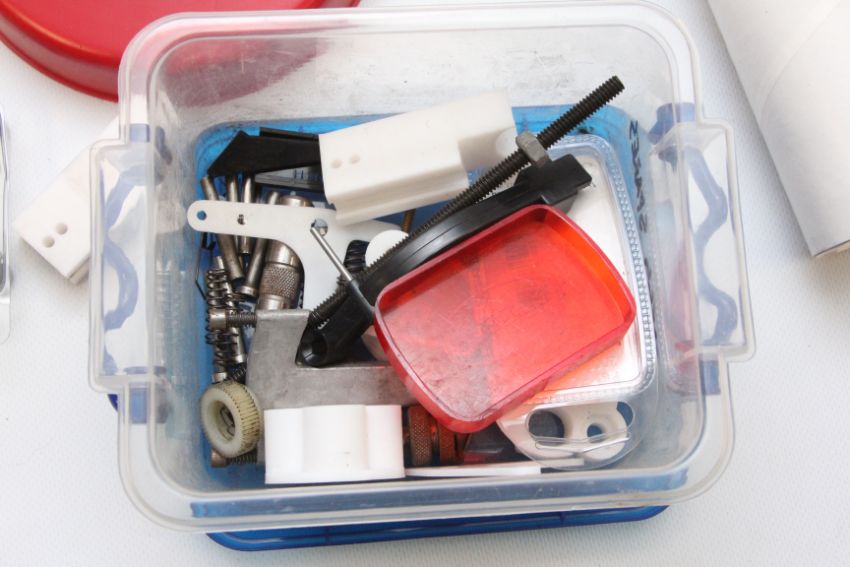 A WOODEN BOX CONTAINING RE-LOADING EQUIPMENT TO INCLUDE DIES AND SCALE ETC.
