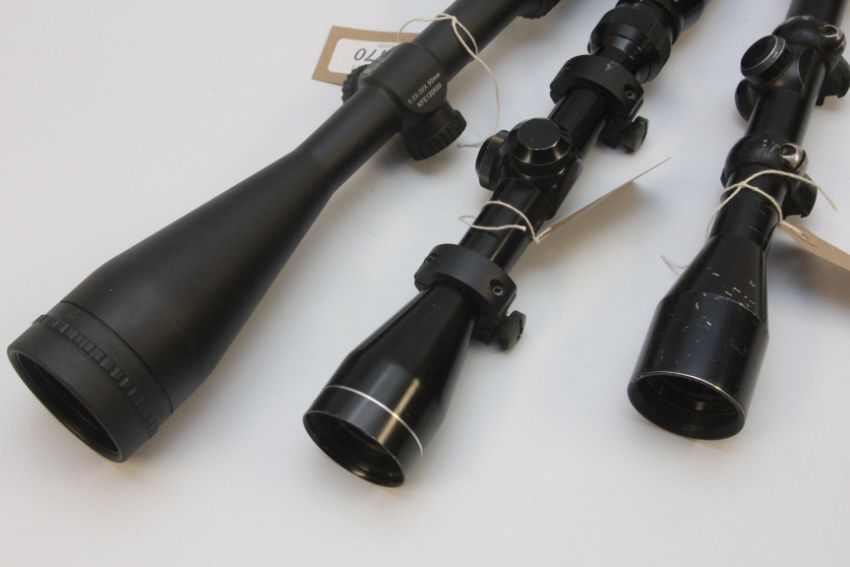 THREE RIFLE SCOPES TO INCLUDE BURRIS FULL FIELD 6.5X-20X50MM (NO MOUNTS), TASCO 3-9X40 (WITH MOUNTS) AND PANORAMA (WITH MOUNTS).