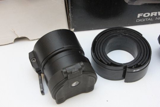 BOXED PULSAR FORWARD DFA75 DIGITAL NIGHT VISION ATTACHMENT ALONG WITH TWO BOXED COVER RING ADAPTORS 56MM AND 50MM.