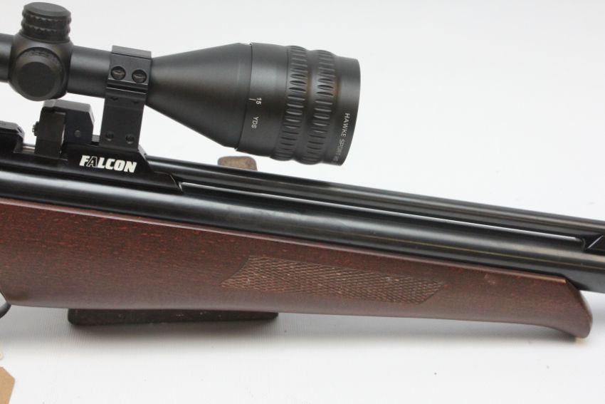 FALCON PCP MULTI SHOT AIR RIFLE .22 CALIBRE COMPLETE WITH MAGAZINE, FILL ADAPTOR, HAWKE SPORT HD 3-9 X 50 AO RIFLE SCOPE AND BISLEY RIFLE SLEEVE - (ALL GUNS TO BE INSPECTED AND SERVICED BY QUALIFIED GUNSMITH BEFORE USE)