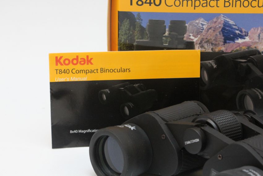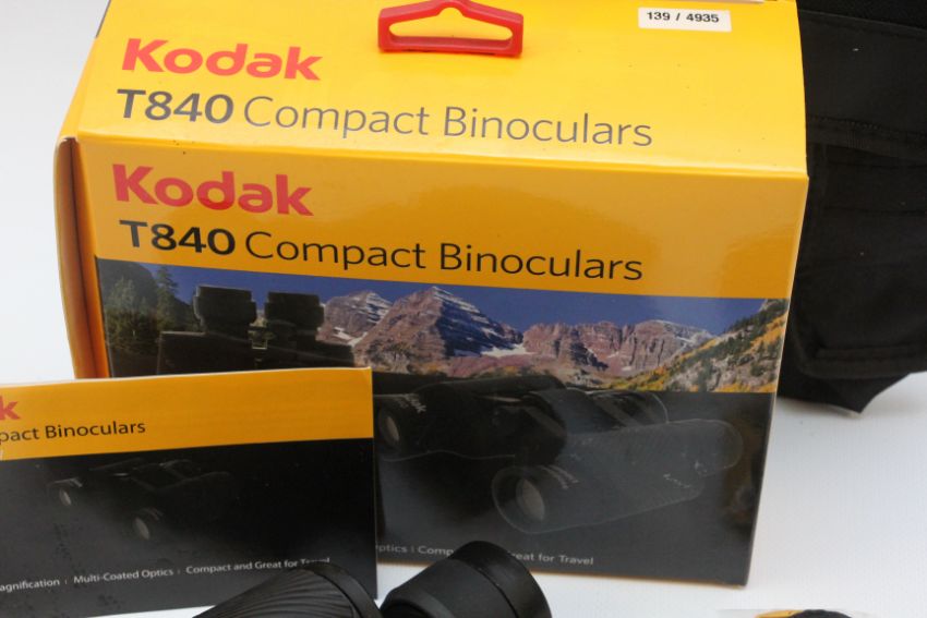 PAIR KODAK T840 8 X 40 MAGNIFICATION COMPACT BINOCULARS BOXED WITH TRAVEL CASE.