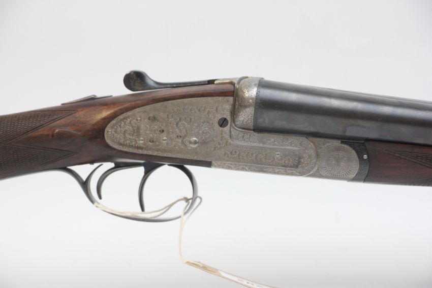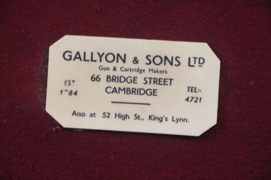 GALLYON & SONS LTD 12 GAUGE SIDE LOCK SIDE BY SIDE SHOTGUN, 2½ INCH CHAMBERS, 28 INCH NITRO PROOFED EJECTOR BARRELS, WELL FIGURED TEAR DROP STOCK, #12066. PRESENTED IN GOOD QUALITY TAN LEATHERED MOTORING CASE BEARING GALLYON & SONS LTD, GUN & CARTRIDGE MAKERS, 66 BRIDGE STREET CAMBRIDGE - (REF: 1993) - (ALL GUNS TO BE INSPECTED AND SERVICED BY QUALIFIED GUNSMITH BEFORE USE)
