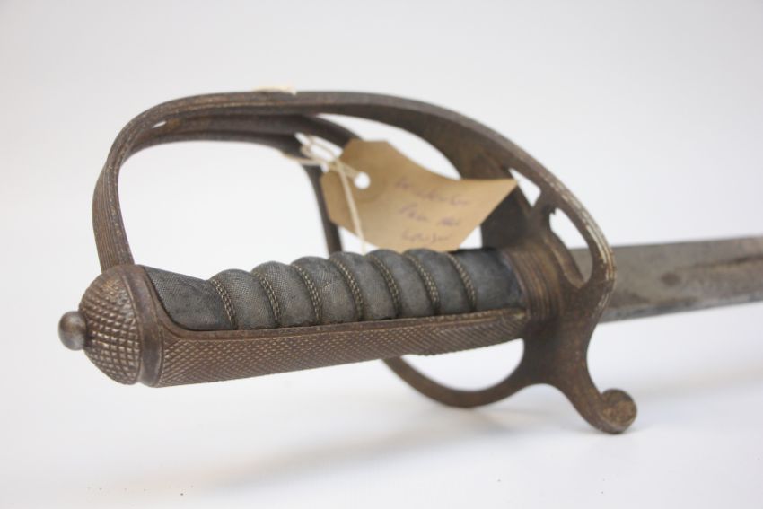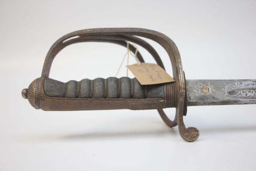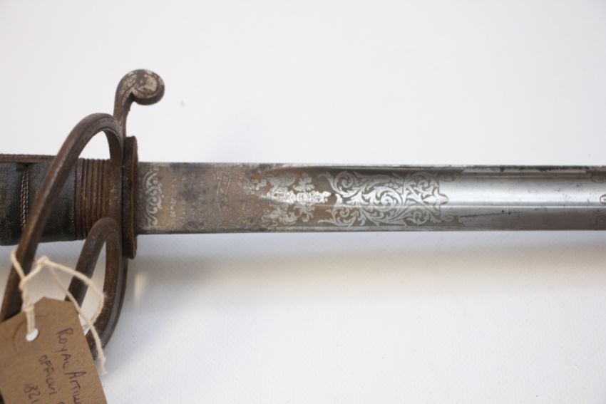 ROYAL ARTILLERY OFFICERS SWORD WITH SCABBARD OPEN BASKET HILT.