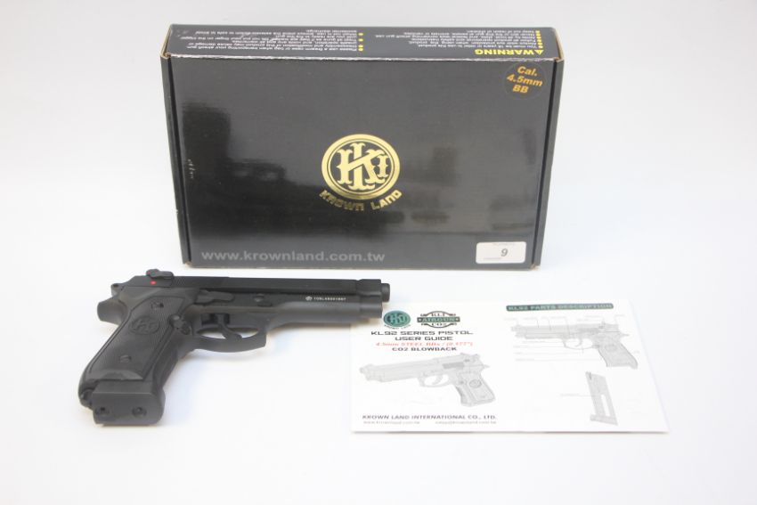 KROWN KL92 STEEL BB Co2 BLOWBACK .177 AIR PISTOL, BOXED - (ALL GUNS TO BE INSPECTED AND SERVICED BY QUALIFIED GUNSMITH BEFORE USE)