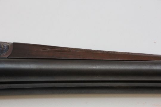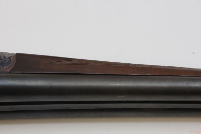 GOWER 12 GAUGE SIDE BY SIDE SHOTGUN, 28 INCH BARRELS, #75470 WITH CANVAS GUN SLEEVE, CANVAS CARTRIDGE BAG, APPROX 50 CARTRIDGES AND GAME CARRIER - (REF: 1925) - (ALL GUNS TO BE INSPECTED AND SERVICED BY QUALIFIED GUNSMITH BEFORE USE)