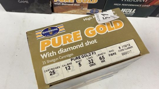 250 X GAUGE CARTRIDGES TO INCLUDE GAMEBORE, BLACK GOLD, PURE GOLD, HULL HIGH PHEASANT, CHURCHILL HELL FIRE GAME.