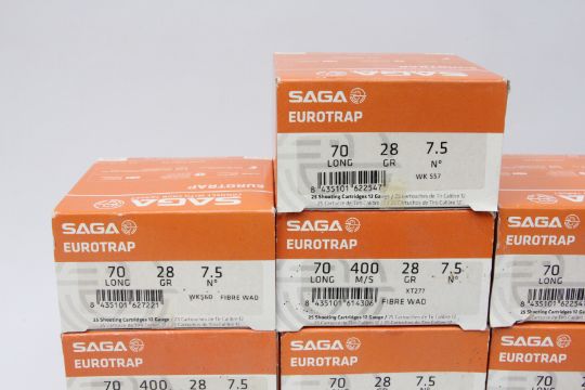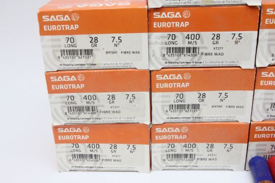 APPROX 300 12 GAUGE CARTRIDGES TO INCLUDE SAGA EURO TRAP 28 GRAM 7.5 SHOT + QUANTITY LOOSE.